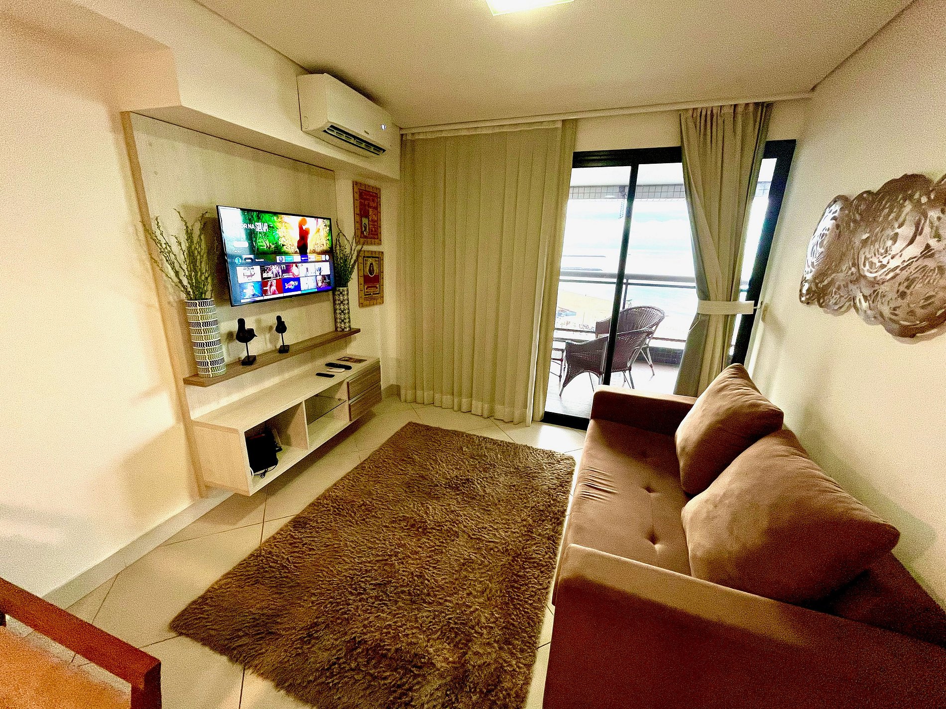 Apartamento completo, 2 quartos, cozinha completa. Varandão com vista panoramica para o mar.