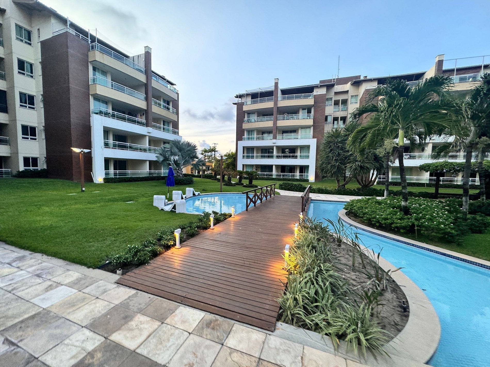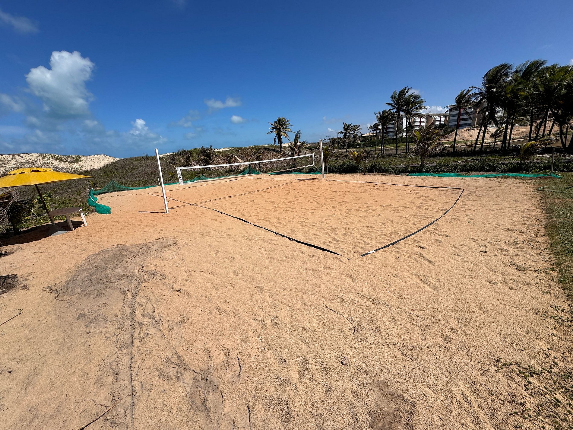 Gransol pé na areia, apenas 600m do BEACH PARK, com acesso direto a praia, dispõe de uma piscina envolvendo todos os apartamentos, sauna, quadras de futebol e voleybol de areia.